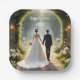 Pictured Walking Hand In Hand Down A White Rose Hedge, A Bride And Groom Walk Away Through A Green Fern Archway Into A Magical Enchanted Forest.