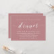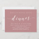 Mark the beginning of your forever with elegance using our contemporary dusty rose pink theme wedding elopement celebration invitation card, "Happily Ever After Dinner". Perfect for couples extending their joyous occasion, this invitation exudes sophistication with a hint of playfulness, setting the stage for a memorable event. Adorned with a timeless modern script design theme, it adds a touch of refined charm to your festivities. Crafted by TeeshaDerrick, this invitation promises to beautifully capture your love story.