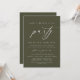 Mark the beginning of your forever with elegance using our contemporary olive green themed wedding elopement celebration invitation card, "Happily Ever After Party". Perfect for couples extending their joyous occasion, this invitation exudes sophistication with a hint of playfulness, setting the stage for a memorable event. Adorned with a timeless modern script design theme, it adds a touch of refined charm to your festivities. Crafted by TeeshaDerrick, this invitation promises to beautifully capture your love story.