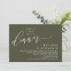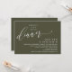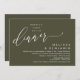 Mark the beginning of your forever with elegance using our contemporary rustic olive green theme wedding elopement celebration invitation card, "Happily Ever After Dinner". Perfect for couples extending their joyous occasion, this invitation exudes sophistication with a hint of playfulness, setting the stage for a memorable event. Adorned with a timeless black and white theme, it adds a touch of refined charm to your festivities. Crafted by TeeshaDerrick, this invitation promises to beautifully capture your love story.