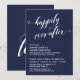 Here's a fun, simple choice for your post-wedding celebration needs. Over an editable solid background, I've placed a typography graphic that reads "happily ever after" featuring an elaborate script font embellished with hearts. Below that, your details appear in a simple, all-caps font. Use the template fields to add your own info and click to customise further if you'd like to make any additional modifications. All layers are unlocked to allow for all the positioning and sizing control you desire.