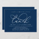 This is the wedding elopement party invitation card, with romantic and modern minimalist script design (happily ever after lunch), in Navy Blue themed. Please edit with your wedding elopement party invitation details.