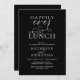Elegantly announce your happily ever after with our modern black and white theme, modern classy wedding elopement celebration invitation card, "Happily Ever After Lunch". Tailored for couples continuing their love story, this invitation strikes a perfect balance of sophistication and charm, setting the scene for an unforgettable event. Featuring a modern contemporary script design, it adds a touch of timeless grace to your special day. Designed by the talented TeeshaDerrick, this invitation is a stylish expression of your enduring love.