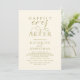 Elegantly announce your happily ever after with our modern yellow gold theme, modern classy and elegant wedding reception celebration invitation card, "Happily Ever After", hors d'oeuvres, drinks, dessert, and dancing after the wedding ceremony. Tailored for couples continuing their love story, this invitation strikes a perfect balance of sophistication and charm, setting the scene for an unforgettable event. Featuring a modern contemporary script design, it adds a touch of timeless grace to your special day. Designed by the talented TeeshaDerrick, this invitation is a stylish expression of your enduring love.