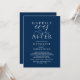 Elegantly announce your happily ever after with our modern navy blue theme, modern classy and elegant wedding reception celebration invitation card, "Happily Ever After", hors d'oeuvres, drinks, dessert, and dancing after the wedding ceremony. Tailored for couples continuing their love story, this invitation strikes a perfect balance of sophistication and charm, setting the scene for an unforgettable event. Featuring a modern contemporary script design, it adds a touch of timeless grace to your special day. Designed by the talented TeeshaDerrick, this invitation is a stylish expression of your enduring love.