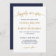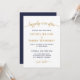 Invite your guests to celebrate your extra special day with this modern navy blue and gold wedding invitation. Add your own special touch to this simply elegant design which features the words "happily ever after" set in flowing gold script typography including curved text and long tail glyphs along with contrasting formal navy blue text. Feel free to contact me if you need help or a custom order. A coordinating navy blue background colour is on the back.