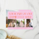 Modern and playful wedding thank you photo card featuring a text that says "You're part of our happily ever after" with 3 of your pictures. You can add another photo on the back with a message. Orange pink.