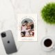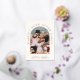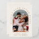 Light cream elopement or private wedding announcement and reception invitation. The front features your photo in an arch frame and "Happily Ever After Party" in elegant typography in real rose gold foil. Add your first names, wedding date and location. On the reverse you can personalise your message in more detail and add party or reception details and your names in a signature-like script.