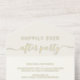 Elegant light cream elopement or private wedding announcement and casual reception all-in-one invitation featuring "Happily Ever After Party" showcased in a blend of simple lettering and a chic script with swashes, your invitation details, and your RSVP response card, all rendered in your choice of genuine gold, silver or rose gold foil.