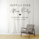 Chic cream wedding reception welcome and photo backdrop tapestry featuring "Happily Ever After Party" in simple modern typography and a stylish script, a heart and your names and reception date.