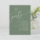 Celebrate the magical evening after “I do” with this sophisticated and romantic wedding dinner and dancing invitation — perfect for honoring the happy couple. Design Highlights, Modern minimalist aesthetic with bold serif typography and flowing script, “Happily ever after party” headline sets a dreamy, timeless tone, in sage green theme. Let your guests know this is more than just dinner — it’s the celebration with forever. Order now and set the tone for an unforgettable celebration!