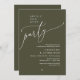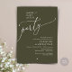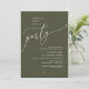 Celebrate the magical evening after “I do” with this sophisticated and romantic wedding dinner and dancing invitation — perfect for honoring the happy couple. Design Highlights, Modern minimalist aesthetic with bold serif typography and flowing script, “Happily ever after party” headline sets a dreamy, timeless tone, in olive green theme. Let your guests know this is more than just dinner — it’s the celebration with forever. Order now and set the tone for an unforgettable celebration!