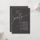 Celebrate the magical evening after “I do” with this sophisticated and romantic wedding dinner and dancing invitation — perfect for honoring the happy couple. Design Highlights, Modern minimalist aesthetic with bold serif typography and flowing script, “Happily ever after party” headline sets a dreamy, timeless tone, in charcoal grey theme. Let your guests know this is more than just dinner — it’s the celebration with forever. Order now and set the tone for an unforgettable celebration!
