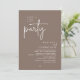 Announce your happily ever after in style with our modern minimalist casual script design wedding reception elopement dinner celebration invitation card in warm taupe brown theme. Our "Happily Ever After Party" Invitation card is ideal for couples who have decided to elope and want to host a party to celebrate their union. With its sophisticated yet playful design, this invitation is sure to set the tone for an unforgettable event. The invitation card features a minimalist design with a black and white scheme, adding a touch of timeless elegance to your celebration.