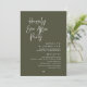 Design Highlights, Modern minimalist aesthetic with casual typography and flowing script, “Happily ever after party” headline sets a dreamy, timeless tone, Clean layout with ample space for all essential details (date, time, venue, RSVP info) and Crisp white text on olive green background — classic, chic, and effortlessly elegant. Perfect for Intimate wedding dinners, post-wedding celebrations with family and close friends and Couples who love modern calligraphy and understated luxury. Fully customisable on Zazzle — personalize names, dates, locations, and even add your own colors or fonts. Print as flat cards, folded invitations, or digital downloads. Let your guests know this is more than just dinner — it’s the night celebrating our forever. Order now and set the tone for an unforgettable celebration!