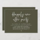 Elegantly announce your happily ever after with our modern classy olive green theme wedding elopement celebration invitation card, "Happily Ever After Party". Tailored for couples continuing their love story, this invitation strikes a perfect balance of sophistication and charm, setting the scene for an unforgettable event. Featuring a modern contemporary script design, it adds a touch of timeless grace to your special day. Designed by the talented TeeshaDerrick, this invitation is a stylish expression of your enduring love.