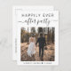 Modern elopement or smaller wedding announcement and reception invitation postcard to inform family and friends that you were married in a small intimate wedding ceremony, and to invite them to a wedding reception. The front features your wedding day photo and "Happily Ever After Party" in a mix of simple typography and a trendy script with swashes. Under your photo you can add your first names and wedding date. On the reverse you can personalize your message and invitation in more detail, input your wedding website URL address to create a QR code for your guests to scan for more information and to RSVP online, and add your names in a signature-like script.
