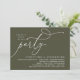 Announce and share your happily ever after in style with our modern contemporary romantic olive green theme design (Happily ever after party) wedding elopement dinner lunch brunch celebration invitation card. It is ideal for couples who have decided to celebrate their best day. With its sophisticated yet playful design, this invitation is sure to set the tone for an unforgettable event. The invitation card features a modern and minimalist script design theme, adding a touch of timeless elegance to your celebration. Designed by TeeshaDerrick