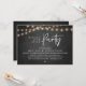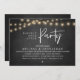 Woth joyius hearts, announce and share your happily ever after in style with our modern rustic string lights, grey cottage chalkboard theme design "Happily ever after party" wedding elopement or reception dinner and dancing celebration invitation card. It is ideal for couples who have decided to celebrate their best day. With its sophisticated yet playful design, this invitation is sure to set the tone for an unforgettable event. The invitation card features a modern and minimalist script design theme, adding a touch of timeless elegance to your celebration. Designed by TeeshaDerrick