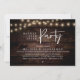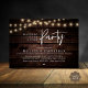Woth joyius hearts, announce and share your happily ever after in style with our modern rustic string lights, grey cottage dark wood theme design "Happily ever after party" wedding elopement or reception dinner and dancing celebration invitation card. It is ideal for couples who have decided to celebrate their best day. With its sophisticated yet playful design, this invitation is sure to set the tone for an unforgettable event. The invitation card features a modern and minimalist script design theme, adding a touch of timeless elegance to your celebration. Designed by TeeshaDerrick