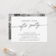 This modern yet elegant wedding elopement party invitation features a script greeting that says "Happily Ever After Party" and classic typography. Customise it with your own "full-bleed" horizontal photo on the back, or delete if desired. All colours in this design are customisable. You can further customise this design by adding additional text to the back.