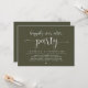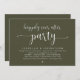Mark the beginning of your forever with elegance using our contemporary beautiful olive green themed wedding elopement celebration invitation card, "Happily Ever After Party". Perfect for couples extending their joyous occasion, this invitation exudes sophistication with a hint of playfulness, setting the stage for a memorable event. Adorned with a timeless modern script design theme, it adds a touch of refined charm to your festivities. Crafted by TeeshaDerrick, this invitation promises to beautifully capture your love story.