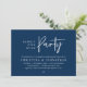 Mark the beginning of your forever with elegance using our contemporary-themed classy modern Navy Blue wedding elopement celebration invitation card, "Happily Ever After Party". Perfect for couples extending their joyous occasion, this invitation exudes sophistication with a hint of playfulness, setting the stage for a memorable event. Adorned with a timeless modern script design theme, it adds a touch of refined charm to your festivities. Crafted by TeeshaDerrick, this invitation promises to beautifully capture your love story.