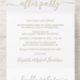 Elegant elopement or private wedding announcement and casual reception all in one invitation featuring "Happily Ever After Party" showcased in a blend of simple lettering and a chic script with swashes, your marriage announcement and reception invitation, and your RSVP response card, all rendered in your choice of genuine gold, silver or rose gold foil.