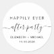 A modern sticker for your post wedding reception or party invitations, favours and correspondence with "Happily Ever After Party" in a mix of simple typography and trendy script with swashes, your first names and date.