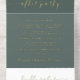 Elegant sage green casual wedding reception all-in-one invitation that features "Happily Ever After Party" showcased in simple lettering and a chic script with swashes, your marriage announcement and reception details, and a white tear-away RSVP postcard, all rendered in your choice of genuine gold, silver or rose gold foil.