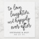 To love, laughter and happily ever after. Chic personalised black and white wedding wine labels feature handwritten style black script typography with your names and wedding date beneath.