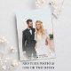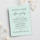 Stylish light mint green elopement or small wedding announcement and wedding reception or celebration party invitation. On the front, "Happily Ever After Party" is written in a mix of simple typography and an elegant script with swashes, and you can personalise your message and invitation in more detail and your names in a signature-like script. The reverse side features your favourite wedding photo, your first names and wedding date.