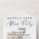 Elegant elopement or private wedding announcement and reception all in one invitation to announce your marriage to friends and family and to invite them to a post-wedding reception or celebration party. Your personalised announcement and invitation overlays your wedding day photo, and "Happily Ever After Party" is written in a mix of simple typography and a modern script. Input your wedding website URL address to create a QR code for your guests to RSVP online and obtain information on accommodations, directions, any night before parties and other details. A tear away RSVP postcard provides a convenient and eco-friendly and envelope-free response from your guests.
