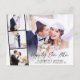 Elegant elopement or private wedding announcement and reception invitation postcard featuring your wedding day photo overlayed with a strip of three smaller square photos and "Happily Ever After" in a stylish modern script. Add your first names, wedding date and location. On the reverse side, personalise your marriage announcement and reception invitation and add your names in a signature-like script.