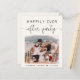 Budget-friendly and elegant light cream elopement or smaller wedding announcement and reception invitation. The front features your wedding day photo, "Happily Ever After Party" in a mix of simple typography and a pretty script with swashes and your first names and wedding date. On the reverse side you can personalise your message in more detail and add party or reception invitation details and your names in a signature-like script.
