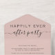 Modern blush pink elopement or private wedding announcement and reception all in one invitation. "Happily Ever After Party" is written in a mix of simple typography and a stylish script with swashes. Input your wedding website URL address to create a QR code for your guests to scan to RSVP online and obtain information on accommodations, directions and other details. A tear away RSVP postcard provides a convenient envelope-free response from your guests that prefer to RSVP by mail.