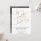 This beautiful, modern Black White and Gold Script Engagement Party Invitation features a faux gold leaf calligraphy script reading 'To Love, Laughter, and Happily Ever After' as the main design element. The design is beautifully complemented by the modern all cap sans serif font in black, on the crisp, white background, detailing the engagement party time, date and location. The back of the invite features a black and white watercolor design on the reverse, to complete the chic, sophisticated look. Copyright Anastasia Designs, all rights reserved.