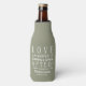 A little something for a wedding favour - personalised bottle coolers. We show sage green with white lettering, but you can change to any colours. The wording "Love, Laughter & Happily Ever After" is completely customisable or just personalise with your names and wedding date. You can add text to the back. Use Zazzle's "Personalise" tool to enter your information. If you need to change the placement of the text boxes, font colour or size just click on the "Click to customise further" button to change those things and/or add text to the back and bottom and change the background colour. Fun favour gift idea for wedding shower, rehearsal dinner or wedding reception. MORE COLORS in our store.