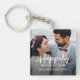 Honour your loved one with this personalised throw pillow featuring a full bleed picture of your big day with the overlaying caption "Happily ever after" and your names in white modern fonts decorated with two little hearts. Personalizable with a second of your favourite photos on the back, this keychain makes the perfect gift on special occasions such as Valentine's day, wedding anniversaries, birthdays, and much more.