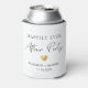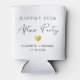 Chic white can cooler favour for your wedding reception or after party celebration featuring "Happily Ever After Party" in a mix of simple typography and a modern script, your first names and reception date and a gold heart.