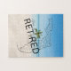 Celebrate the best years of your life with this beautiful retirement themed jigsaw puzzle. The design features a Florida state map with the saying, "Happily Retired." A tropical palm tree replaces the letter "i" in retired! The background is a gorgeous tropical beach scene. Available in various size options. The puzzle is perfect for a retirement party gift, Grandparent's gift, senior citizens, snowbirds, or anyone enjoying retirement in the Sunshine State! Please browse our complete collection of tropical-themed retirement cards, gifts, t-shirts, home decor, and more. Special design requests accepted.
