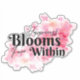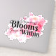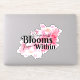 This is a beautiful inspirational sticker which can be used to decorate a variety of things. The design is of pink blossoms with the quote "Happiness Blooms From Within" over them.