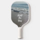 Fun play on words, Happiness comes in Waves, SEAS the Day! A beautiful seascape of waves rolling on to a sandy beach seashore. Seize the day and the game with inspirational and motivational Pickleball paddle in hand.
