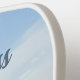 Fun play on words, Happiness comes in Waves, SEAS the Day! A beautiful seascape of an Ocean wave cresting on a sparkling sea with beautiful clouds and sky in the horizon. Seize the day and the game with inspirational and motivational Pickleball paddle in hand.