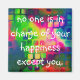 The happiness encouragement magnet is made on a rainbow coloured abstract as it reads" no one is in charge of your happiness except you."