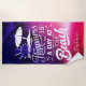 Happiness Is a Day At The Beach Personalised Beach Towel. This design features a pink and purple sunset with palm trees.