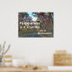 Happiness is a Journey Motivational poster print teaches about enjoying the road to success. Scenic forest photograph of brightly coloured autumn fall trees in yellow, red, orange and green, along a country paved blacktop two-lane road. Pretty oak trees line the edge of the road through the woods. A peaceful and serene landscape to bring the outdoors and love of hiking and camping in, or motivation to get to the desired destination.