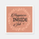 Happiness is an inside job graphic with a peach pink wreath and heart. Happiness, love and inner peace is always from within. Custom graphic design made with love.