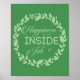 Happiness is an inside job graphic with a green wreath and heart. Happiness, love and inner peace is always from within. Custom graphic design made with love.