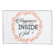 Happiness is an inside job graphic with a peach pink wreath and heart. Happiness, love and inner peace is always from within. Custom graphic design made with love.